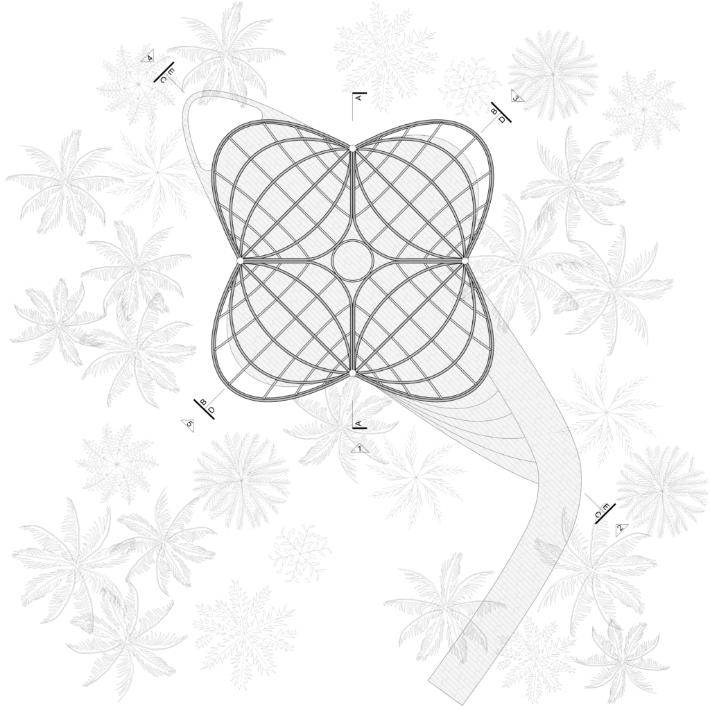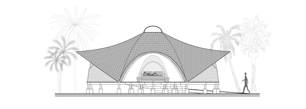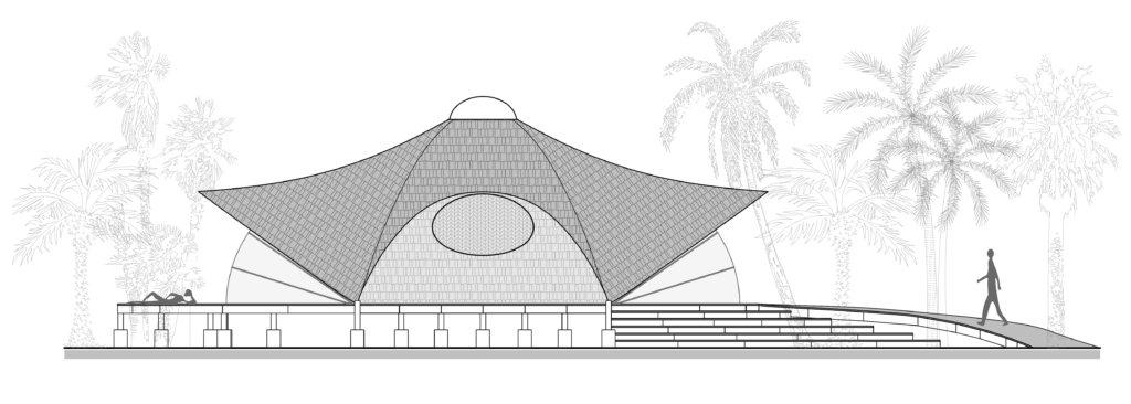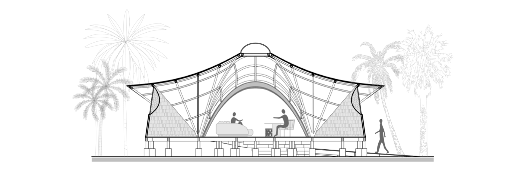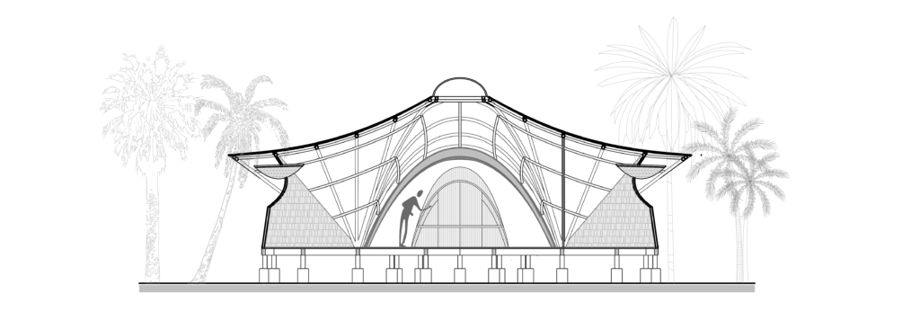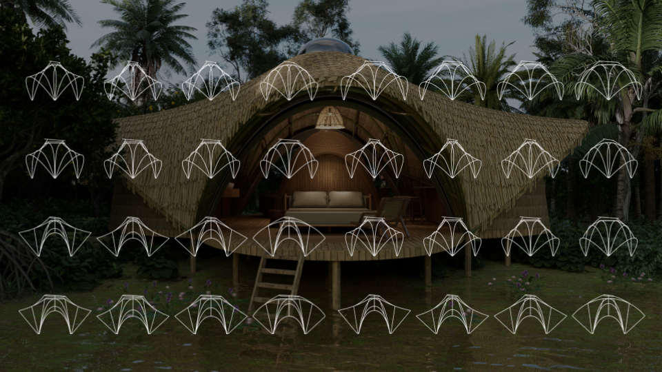 My role focused on advancing the parametric design developed in Grasshopper, refining the project’s scale and dimensions to meet the requirements of a realistic dwelling. This included adjusting parameters such as structural spans, roof inclination, and the number of arches and rafters, adapting the system to a new site while maintaining its original constructive logic. Variations in size and palm species ensure flexibility and responsiveness to local conditions.